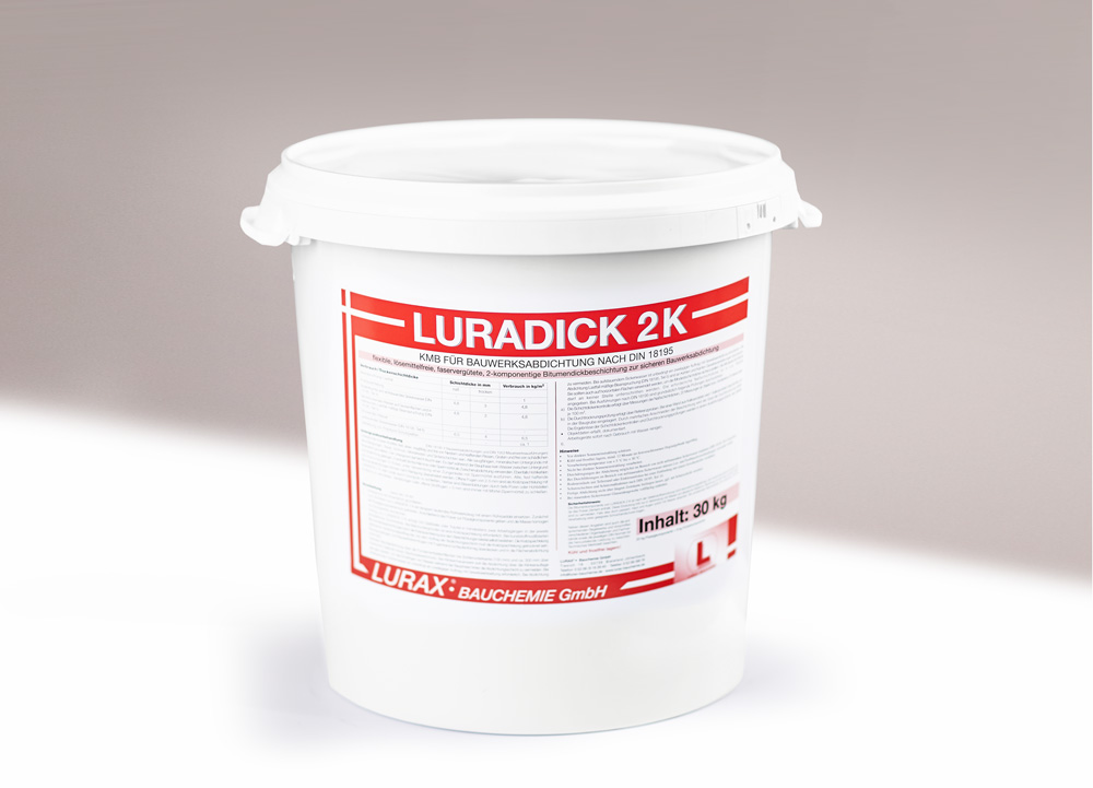 LURADICK 2K ist eine spachtelfähige, umweltschonende, faservergütete, rißüberbrückende 2-komponentige Bitumendickbeschichtung mit hydraulisch abbindendem Pulver. Das Produkt ist beständig gegen die üblicherweise im Erdreich vorkommenden aggressiven Belastungen. LURADICK 2K ist bei gleichbleibender Verarbeitungskonsistenz leicht verarbeitbar und schon nach kurzer Zeit regenfest. Das Produkt ist schnell durchhärtend und flexibel. LURADICK 2K schützt erdberührte Bauteile gegen Bodenfeuchte (Kapillarwasser, Haftwasser), nichtstauendes Sickerwasser und aufstauendes Sickerwasser (DIN 18195,Teil 4-6). Für senkrechte und waagerechte Flächen geeignet. Die Abdichtung wird auf der Wasser zugekehrten Seite aufgetragen. Geeignet auch als Kleber für Dämm-, Schutz- und Dränplatten.